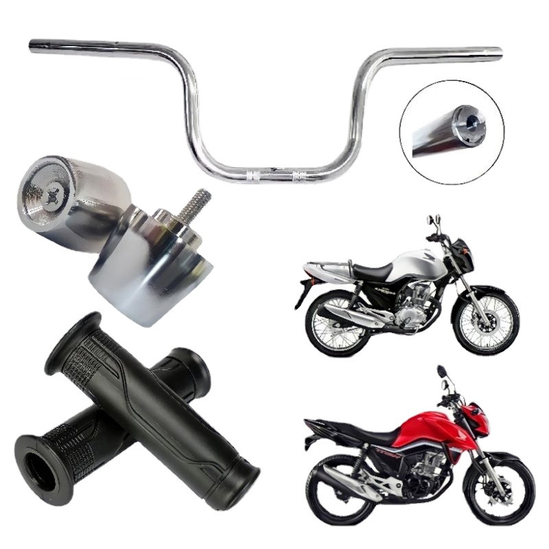 KIT GUIDÃO CARGO COM PESO PCX CROMADO E MANOPLAS CG TITAN FAN START 125 150 160 TODAS