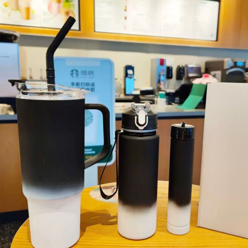 Kit 3 Garrafa Copo Para Carro 240ml+500ml+1200ml de Água Squeeze com 3D adesivo
