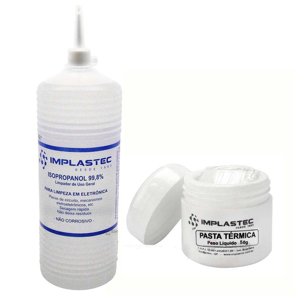 Kit 250ml Alcool Isopropilico Puro 99,8% Implastec + Pasta Térmica Silicone Dissipadora de calor Implastec 50g | Limpeza e Manutenção de Notebooks