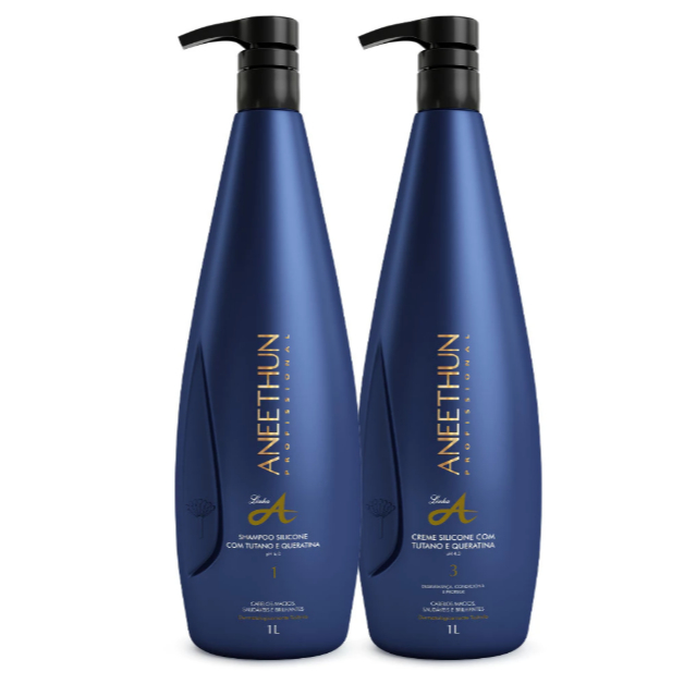 Kit Linha A Shampoo E Creme De Silicone 1L Profissional Lavatório Tratamento Capilar - Aneethun