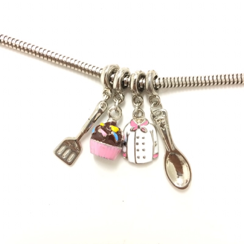 Berloques para pulseiras estilo pandora vivara life/ pingentes pendurados/ banhados / linha chef- cupcake- dolmã jaleco - colher - espátula / joias/ charms/ bracelete/ banho semelhante a prata