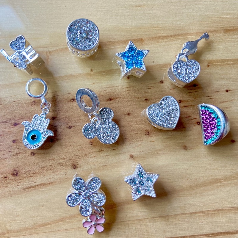 10 Berloques Banhados a Prata 925 Variados Pandora Vivara Life