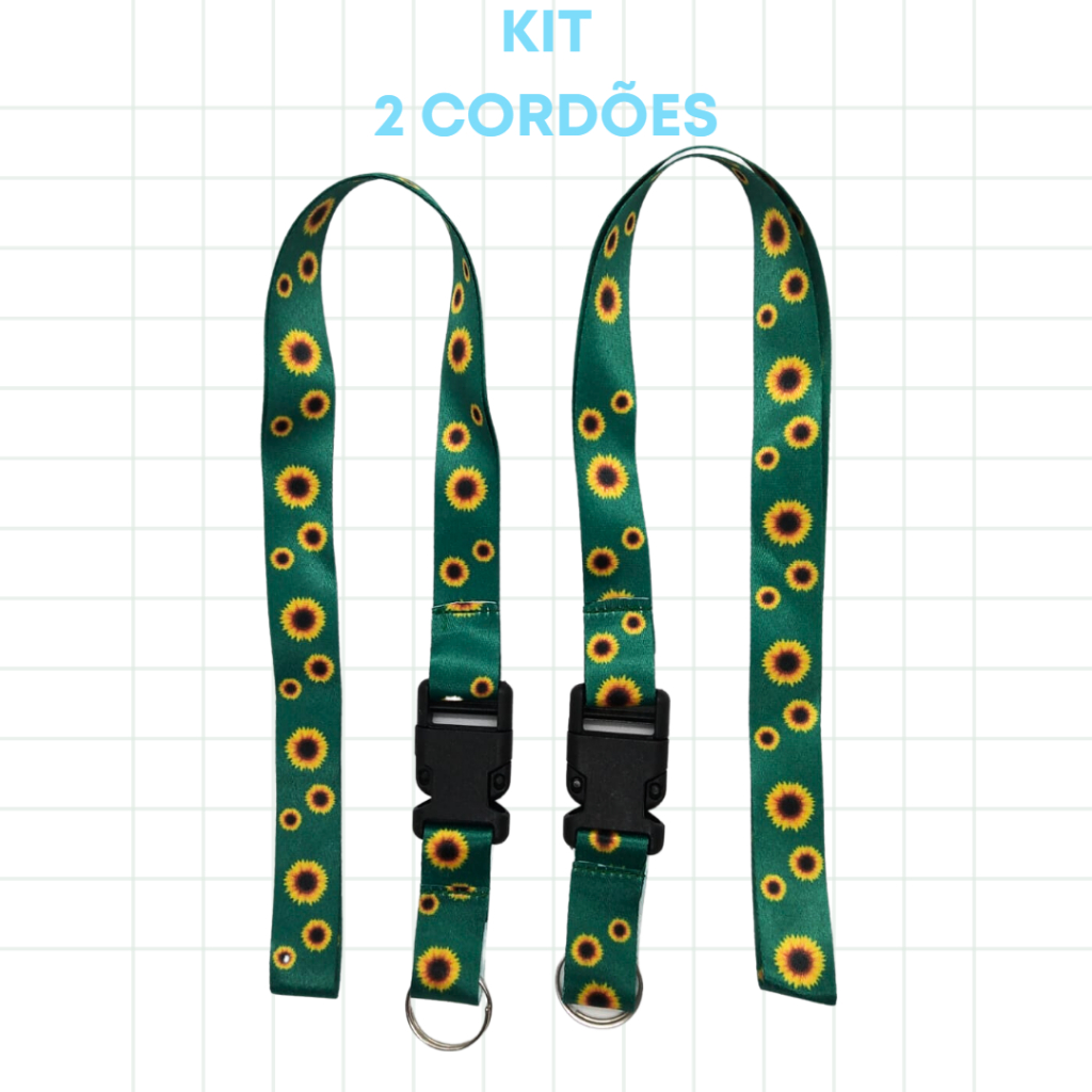 Kit 2 Cordões Pescoço Fecho Engate Rápido Autismo Autista Girassol