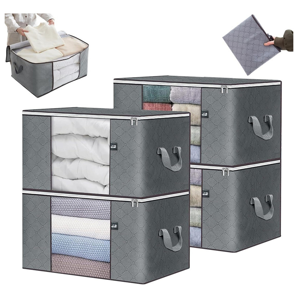 Kit 1/2/3/4 Sacos Organizador Multiuso Anti Mofo Para Edredom Cobertores Roupas De Cama E Banho Dobrável Cinza 60x45x30