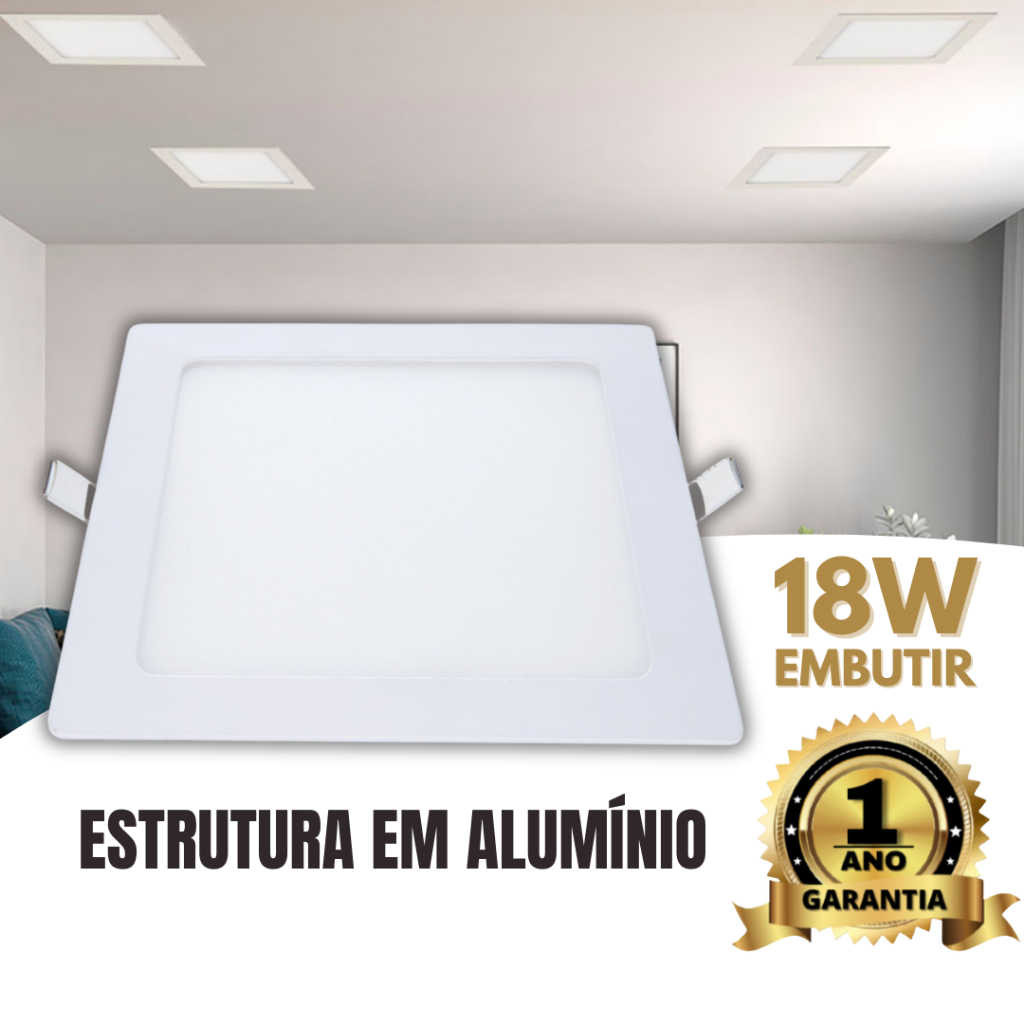 Kit 2 Painel Plafon Led 18w Quadrado Embutir Bivolt 6500k Branco Frio 110/220V Forro Gesso Teto