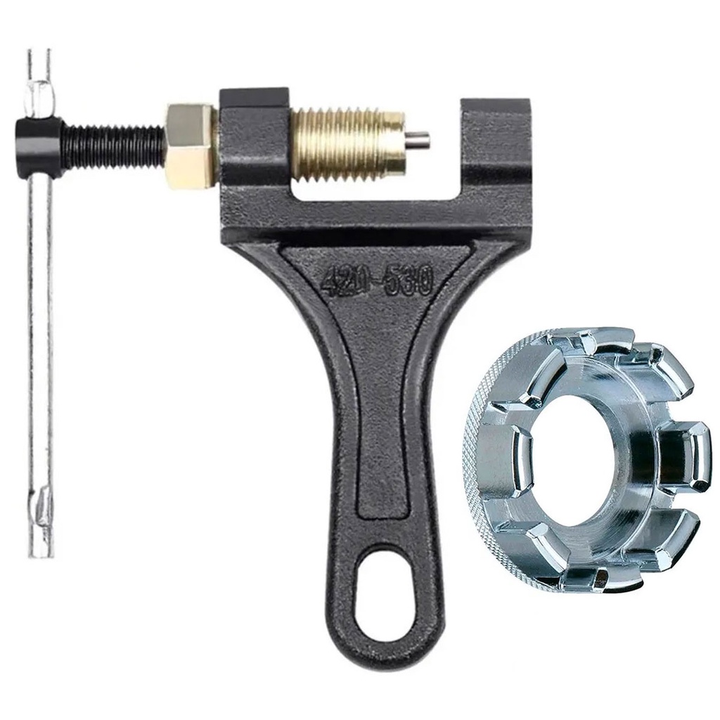 Chave Extrator De Corrente Moto Pino Tamanho 420/530 + Chave De Raio Aro Para Bicicleta Bike Com 8 Medidas Diferentes