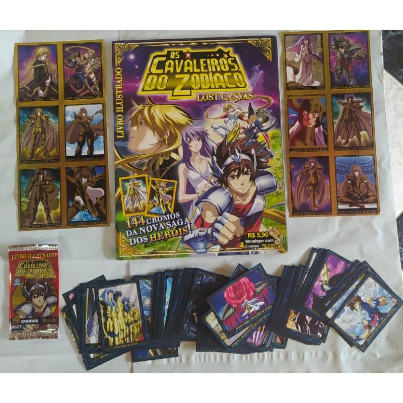 Álbum de figurinhas os Cavaleiros do Zodíaco Lost Canvas, completo para colar.