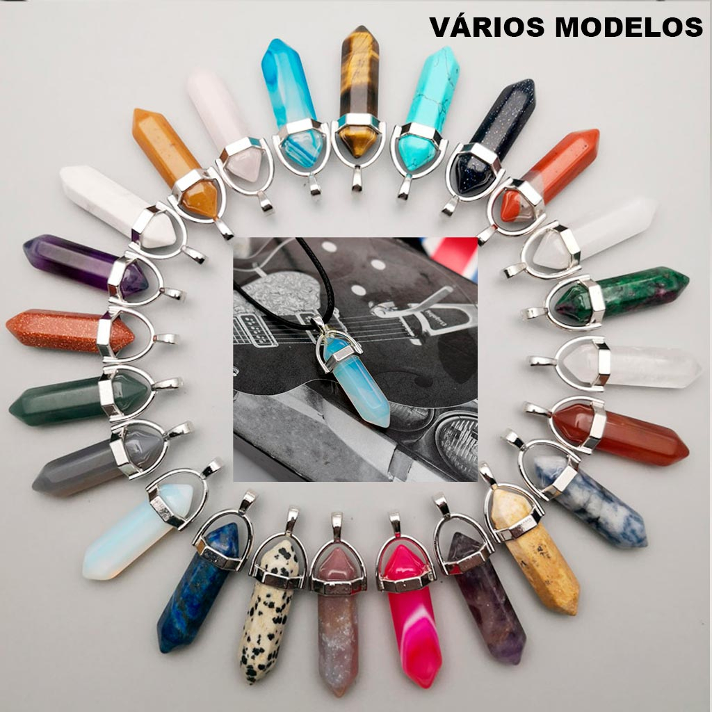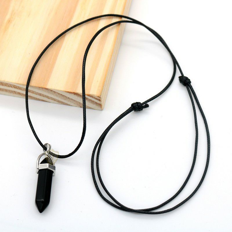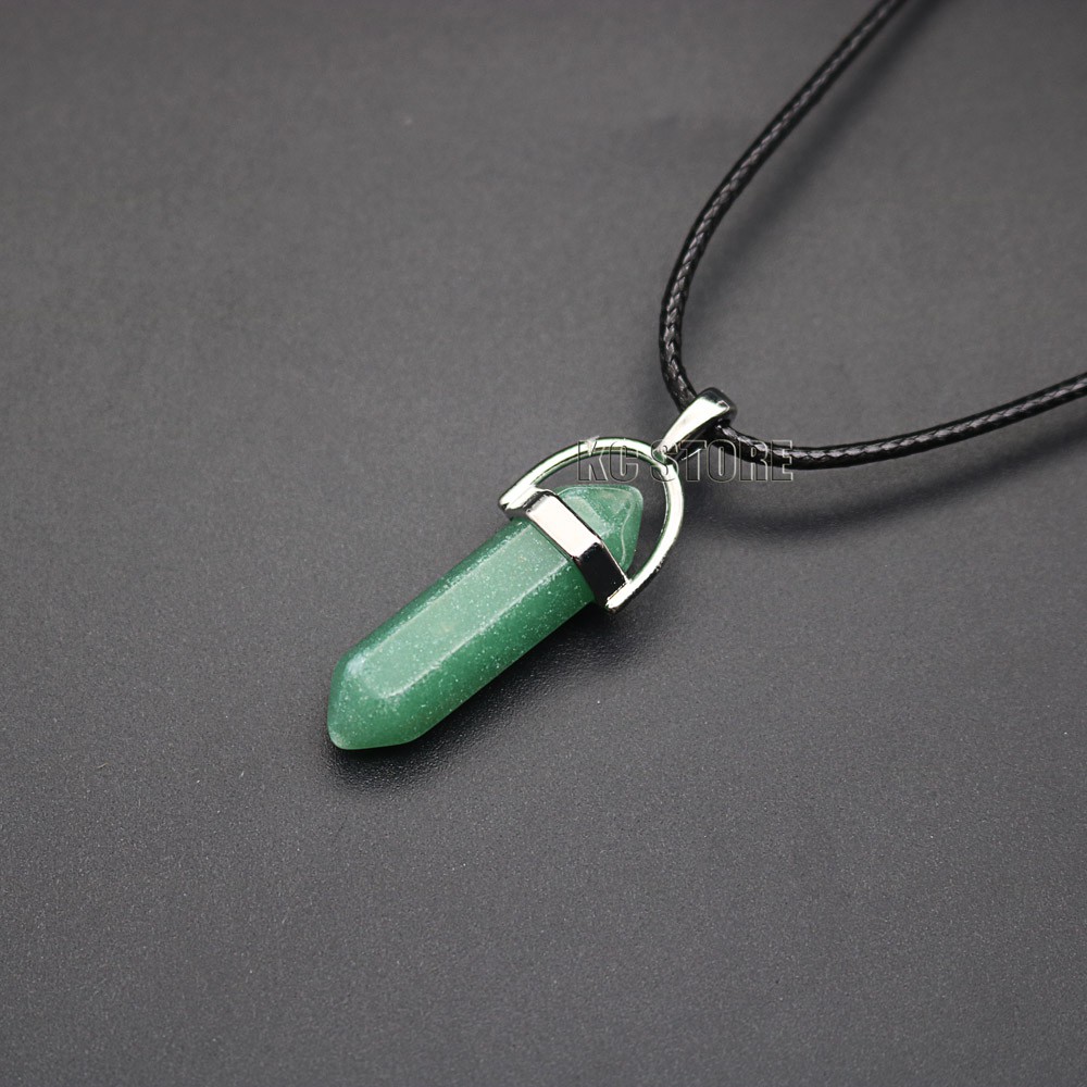 colar cordão preto pedra natural pedra Quartzo verde masculino feminino regulável hippie