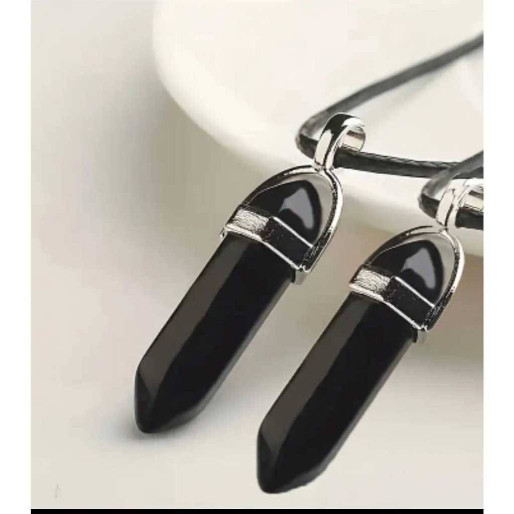 Colar cordao pedra onix preto pedra nartural verdadeira ajustavel masculino feminino