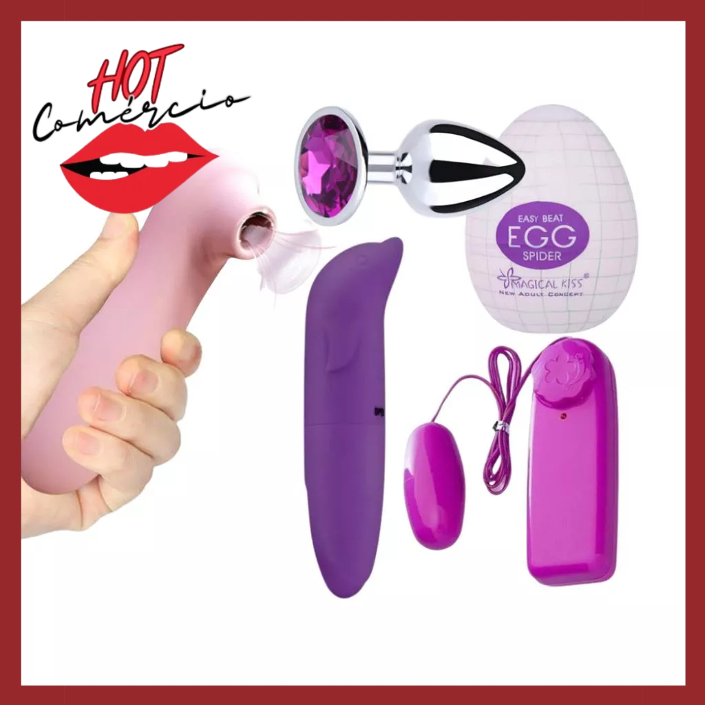 Vibrador Feminino Ponto G + Vibra Bullet + Sugador de Clitoris Clitoriano + Plug Anal Aco Inox + Egg Masturbador Kit Sex Shop Sexy