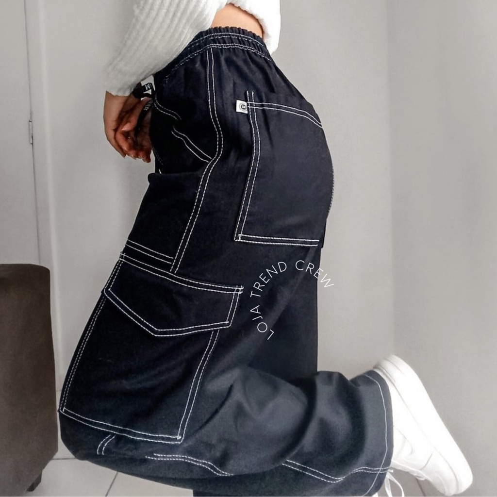 CALÇA CARGO PRETO COM COSTURA BRANCA