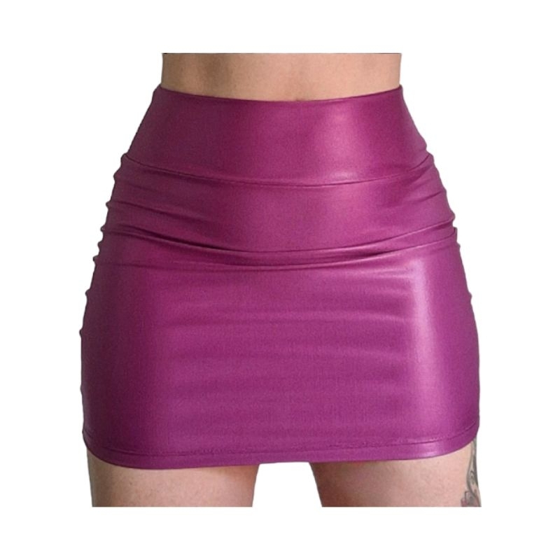 Minissaia Mini Saia Couro Fake PLUS SIZE Suplex Cirrê Brilho