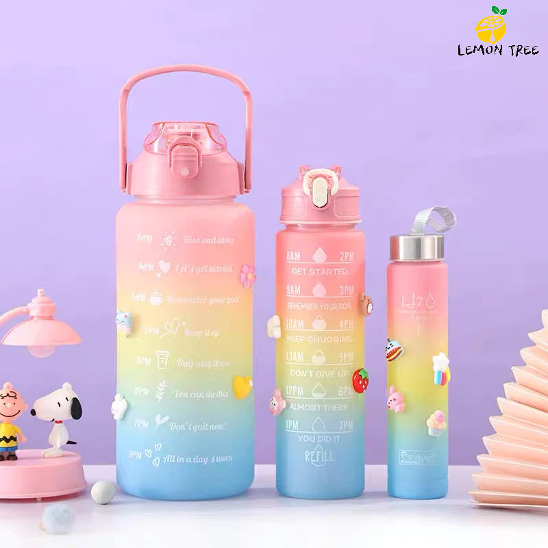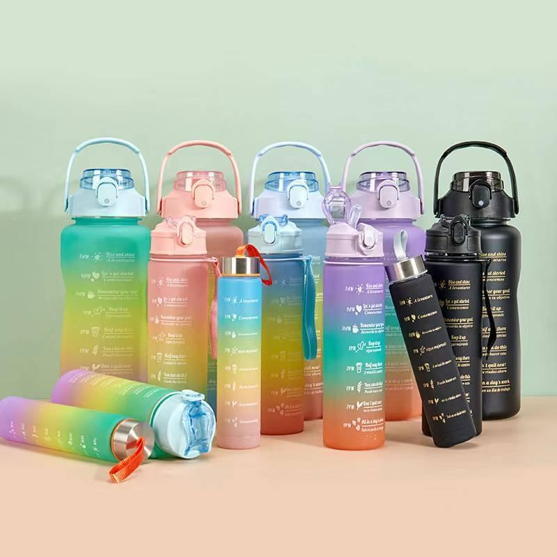 Kit da Garrafa de Água Squeeze Motivacional Com Adesivos 300ML+900ML+2000ML Ming