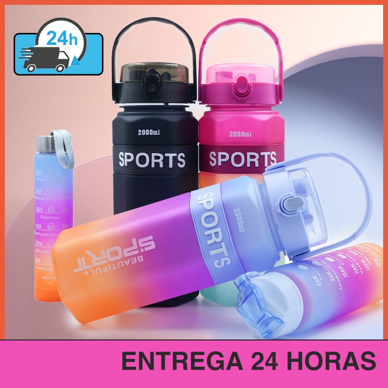 Kit da Garrafa de Água Squeeze Motivacional 300ML+900ML+2000ML-Cor aleatória Kit 3 Garrafas