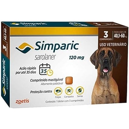 Remédio 3 cp contra pulgas, carrapatos e sarnas para cães de 40 a 60 kg