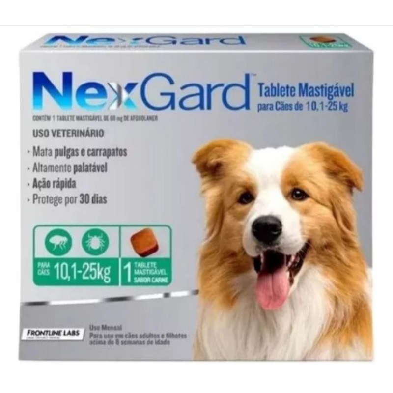 REMÉDIO ANTI PULGAS E CARRAPATOS NEXGARD P/ CÃES 10 Á 25 KG 1 COMPRIMIDO ORIGINAL