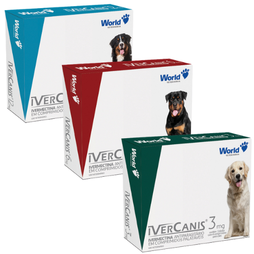Remédio Para Pulgas, Carrapatos e Sarnas Para Cães IverCanis World Ivermectina - 15kg 30kg 60kg