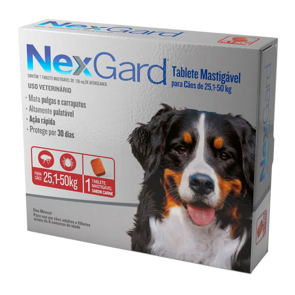NG Incrível Anti Pulga e Carrapato Para Pet Cachorro de 25 a 50 kg 01 Remédio Nex gard 136 mg Avulso