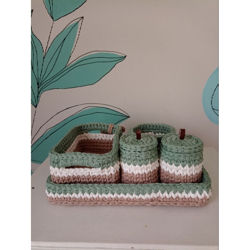 kit Higiene do bebê 5 peças bandeja, porta fraldas, 2 cachepô 1 cesto auxiliar