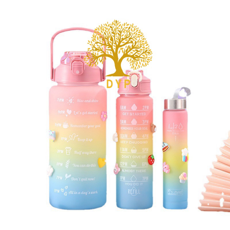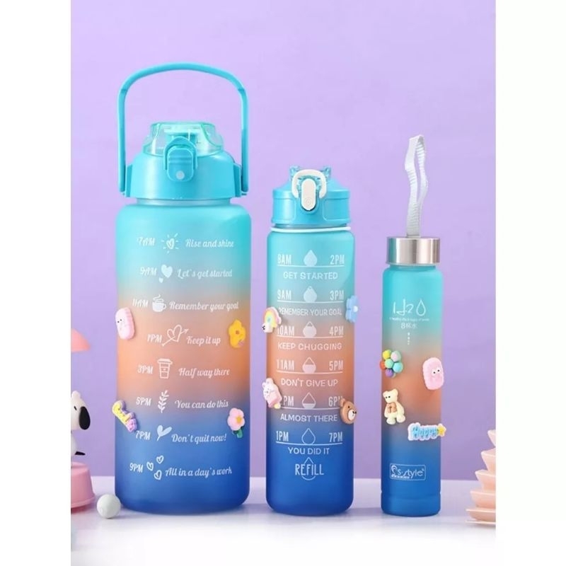 kit com 3 garrafas squeeze motivacional fofa degrade c/adesivos 2l/900 ml/200 ml