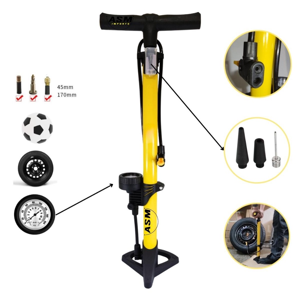 Bomba De Ar 60cm Manômetro 160psi Manual Para Pneus Carro Moto Bicicleta Disponível