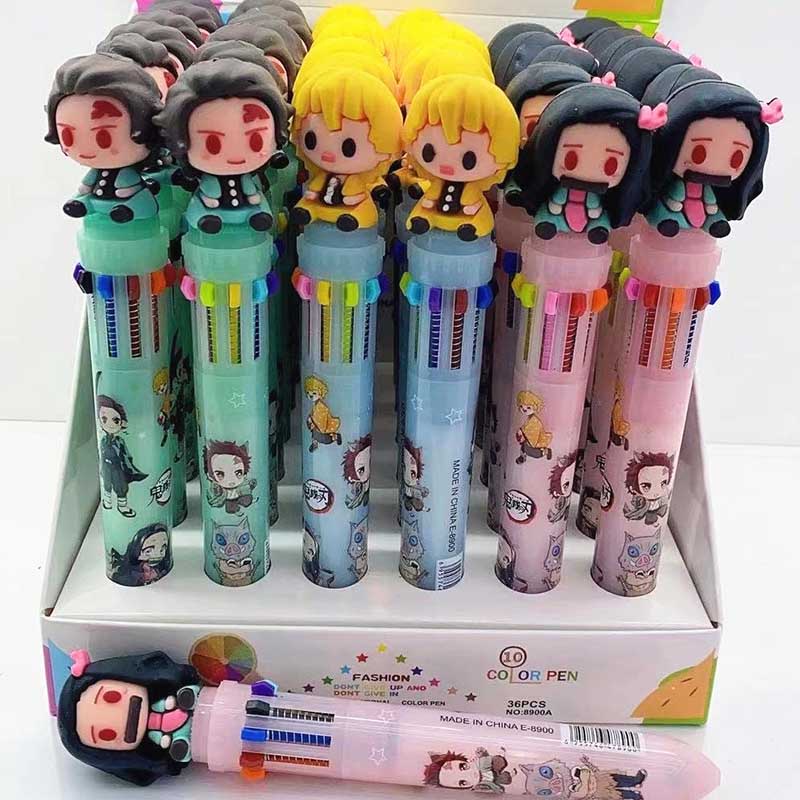 10 cores Kawaii Anime Demon Slayer Kimetsu No Yaiba Caneta Esferográfica Dos Desenhos Animados Bonito Material de Escritório Escolar Papelaria Papelaria Escolar Caneta Multicolor para Presente Menino Menina Kamado Tanjirou Nezuko Agatsuma Zenitsu