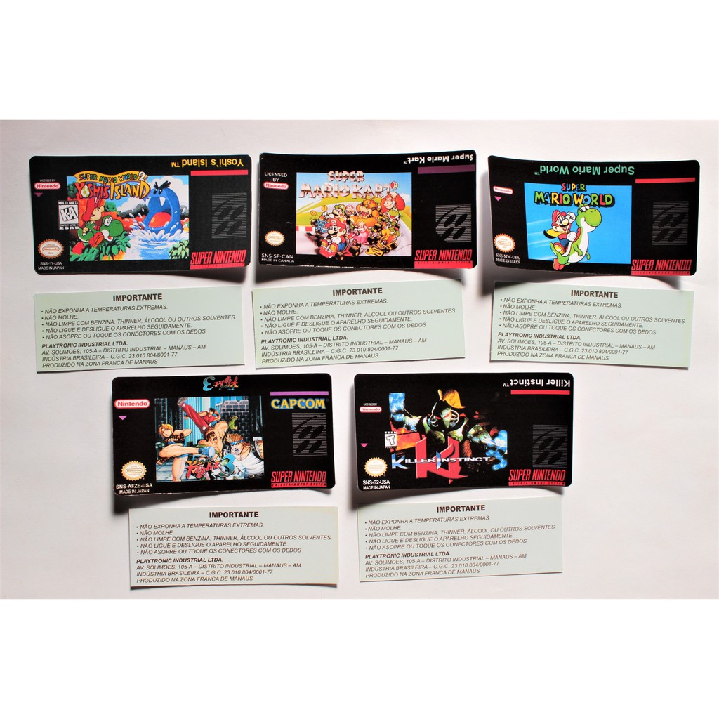 Kit 5 Label Etiquetas Frente E Verso Para Cartucho Super Nintendo Snes 16 Bit