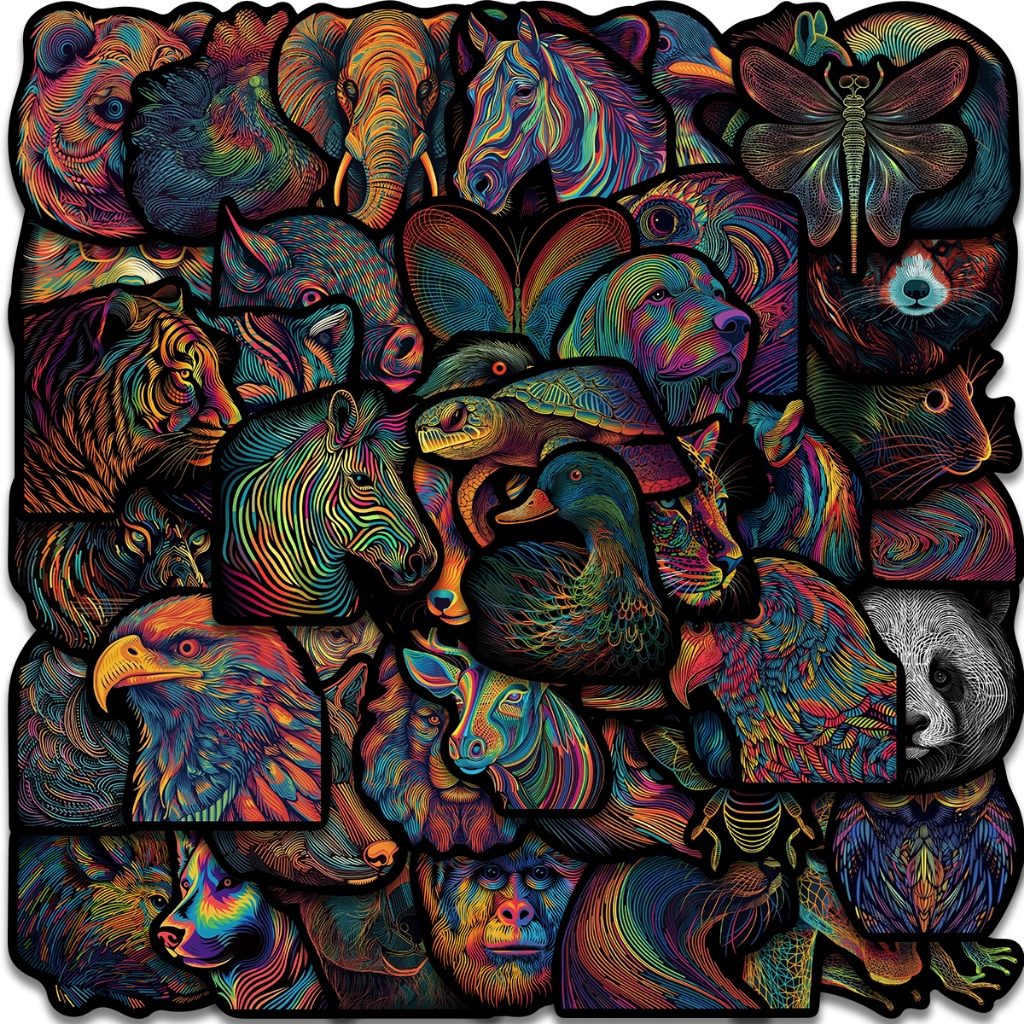 50 Unid . Adesivos Para Animais Da Linha Psicodélica Graffiti Cartoon Skate À Prova D'água Bagagem Esportiva Autocolantes Carros De Bricolage Decalque Kids