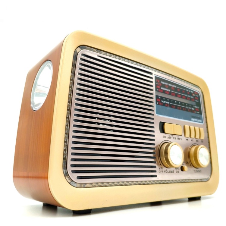 Rádio Retrô Bluetooth AD-3199 com USB, Cartão SD, Lanterna e Rádio FM/AM/SW – Caixa de Som Vintage Portátil