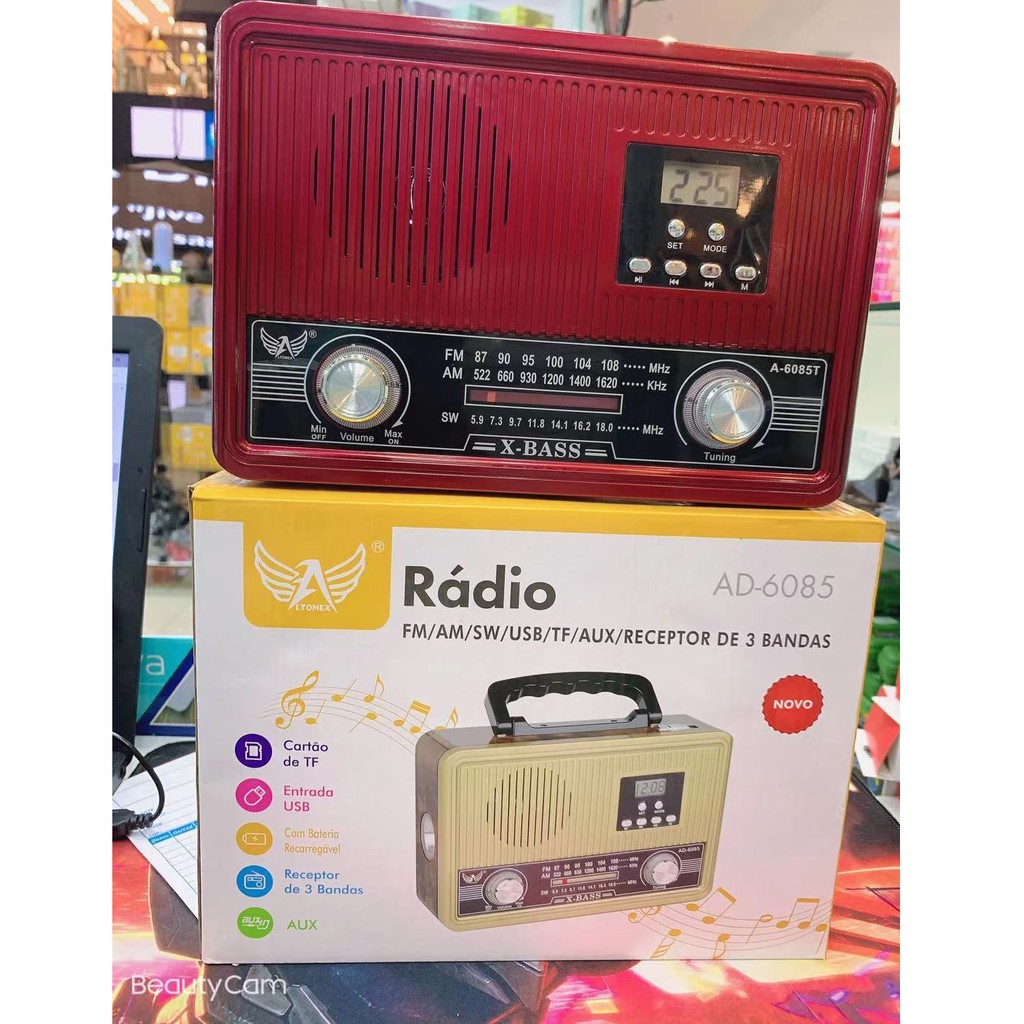 Caixa som portatil retro radio am fm 1088 COM bluetooth Entrada USB Cartão SD Auxiliar