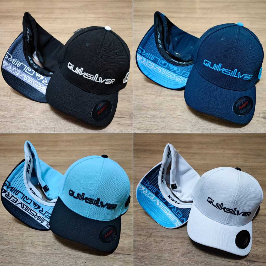 Boné Quiksilver Flexfit Fechado Aba Curva Logo Preto Plate Silver Masculino Alta Qualidade Envio Imediato