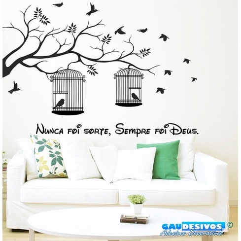 Adesivo Decorativo De Parede Árvore Com Gaiolas E Frase decore seu ambiente casa apartamento sala, quarto, cozinha, vidros, corredor, escritório