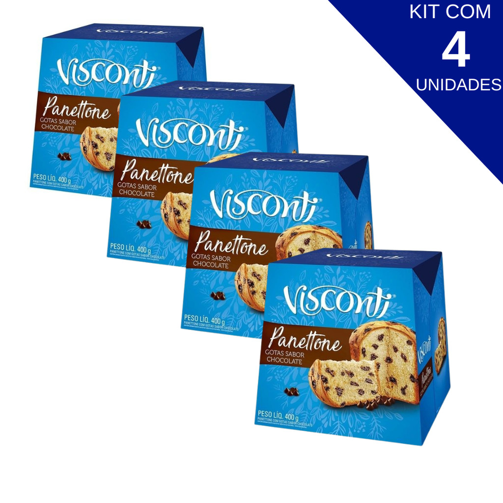 Kit Com 4 Unidades Panettone Gotas De Chocolate Visconti Caixa 400g