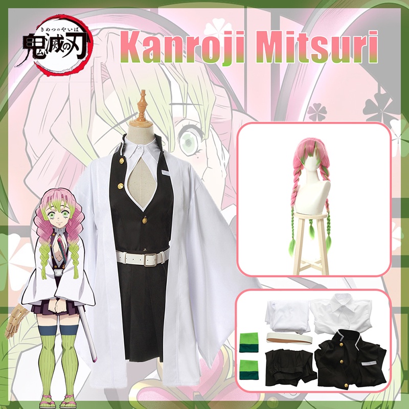 Kimono Kanroji Mitsuri Adulto Caçador De Demônios Cosplay Traje Kimetsu No Yaiba Anime Halloween Lolita Vestido Completo