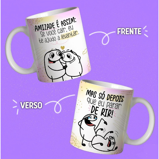 Caneca - Se você cair eu te ajudo a levantar, mas só depois que eu parar de rir - Flork Amiga xicara porcelana ceramica