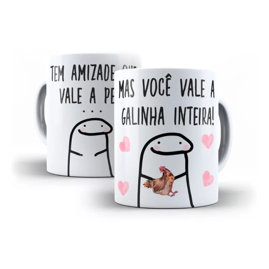 Caneca Flork - Tem Amizades que vale a pena... Mas você vale a galinha inteira, Caneca Meme Flork Porcelana 325ML