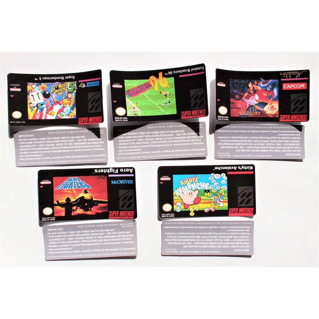 Kit com 5 Labels Etiquetas Adesivas Para Cartucho Fita de Super Nintendo Snes - Frente e Verso