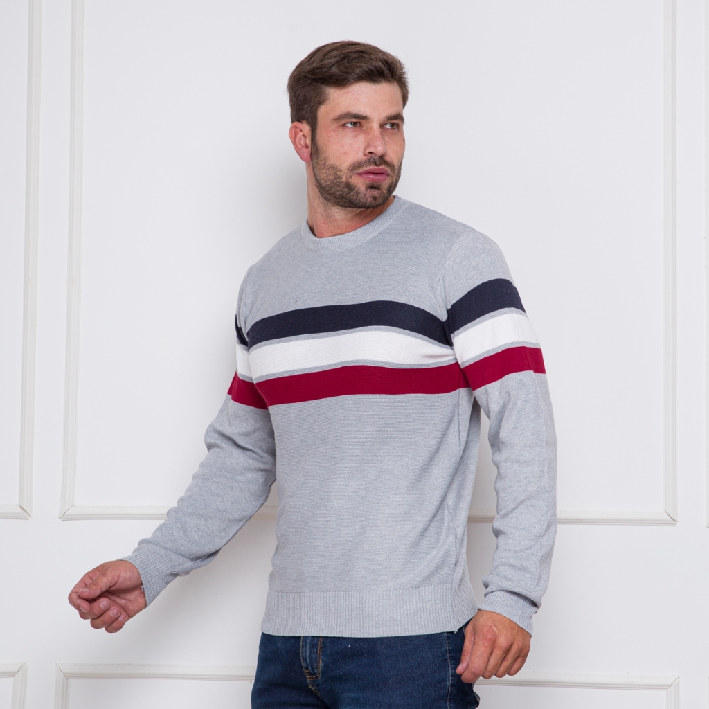 Sueter tricot masculino casaco blusa de frio gola redonda manga longa blusa de Lã Lisa(圆领毛衣)