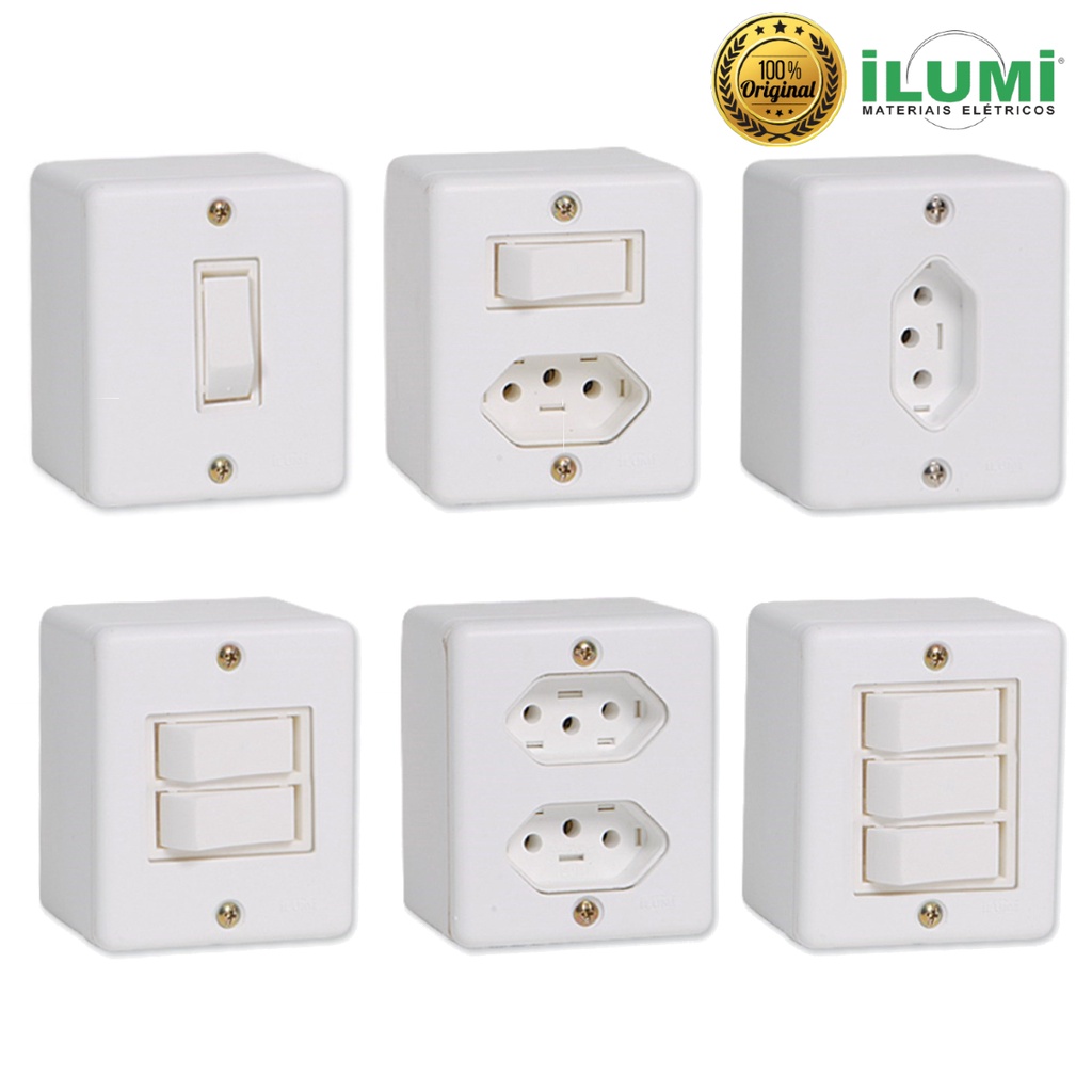 Tomada Interruptor Sobrepor Sistema X Externa 10A/20A Ilumi Simples Paralelo