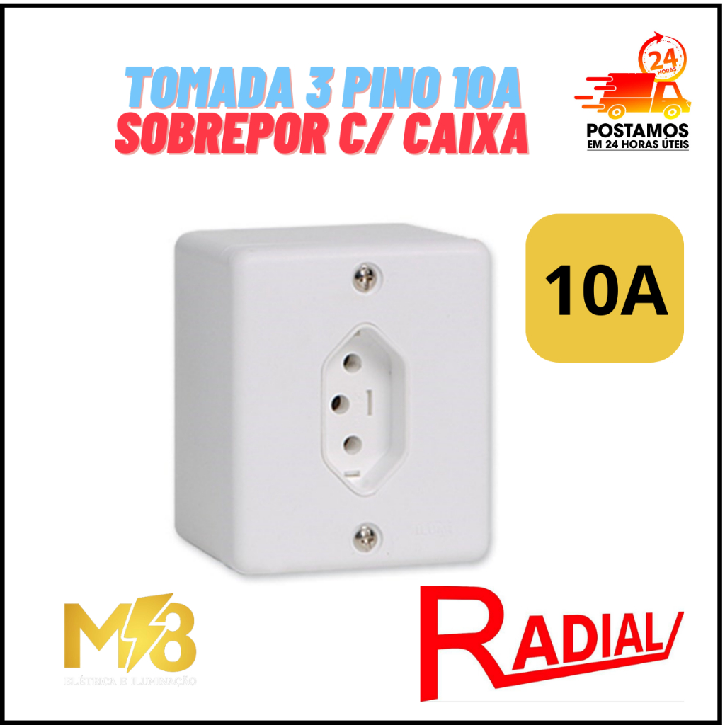 Tomada Simples 3 Pinos Sistema X Caixa Sobrepor Externo 10A - Radial