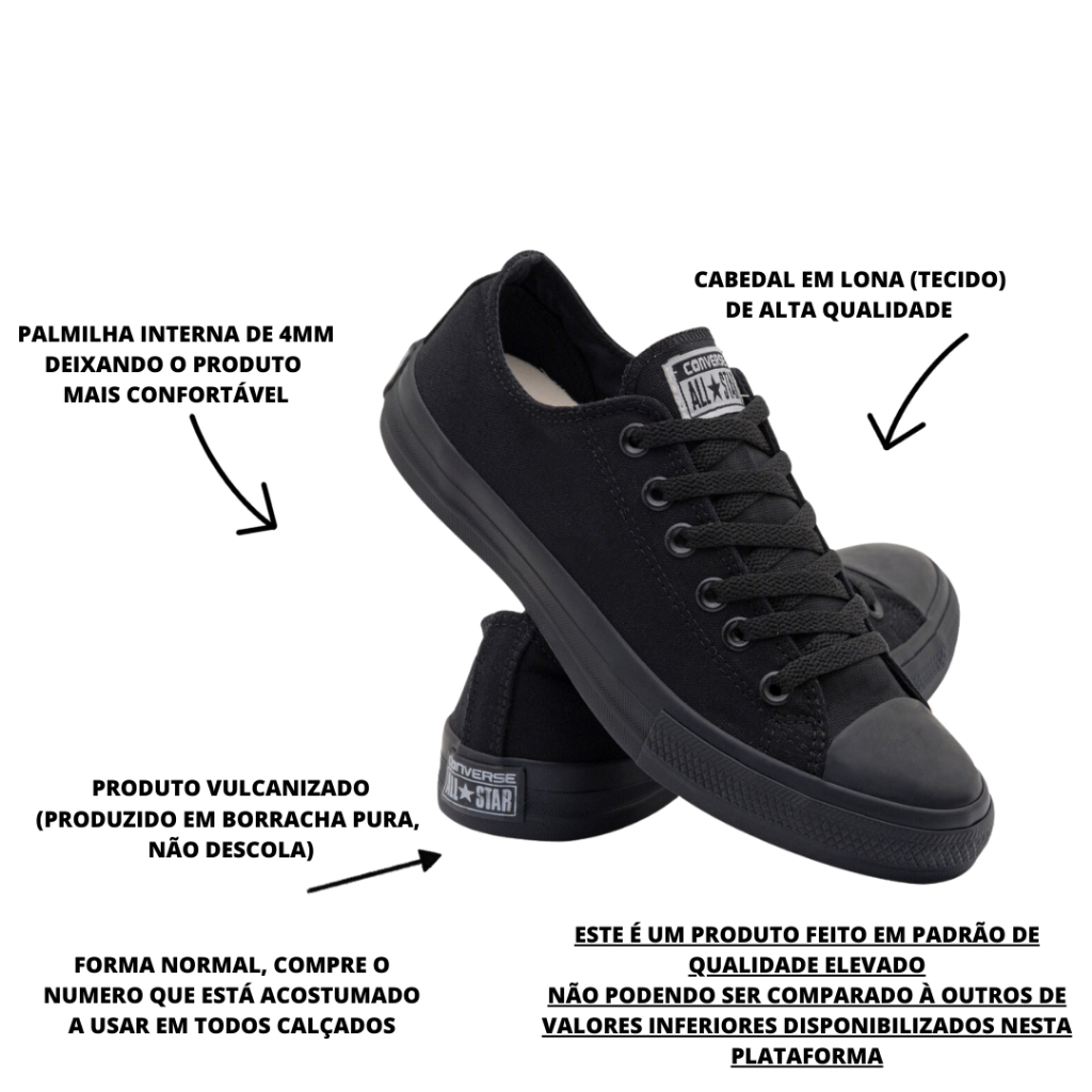 Tênis Cano Baixo Unissex Preto All Black Al Star Chuck Taylor Tradicional Confortável