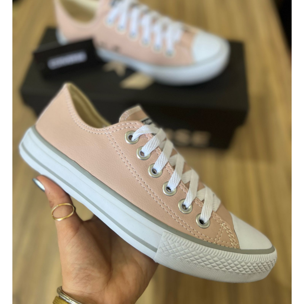 Tenis all star cano baixo rose couro cinza vulcanizado