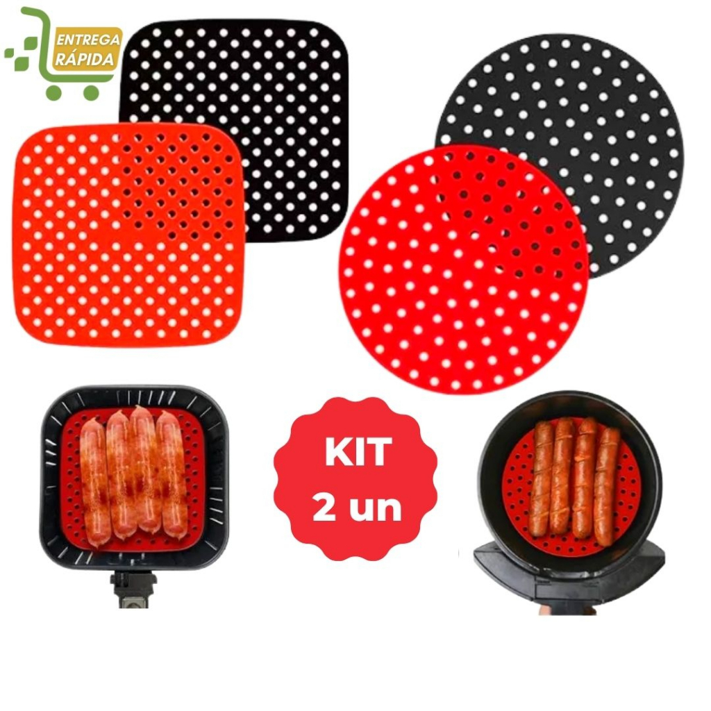 Kit 2 Tapete De Silicone Para Air Fryer Fritadeira Antiaderente Reutilizável Quadrado e Redondo