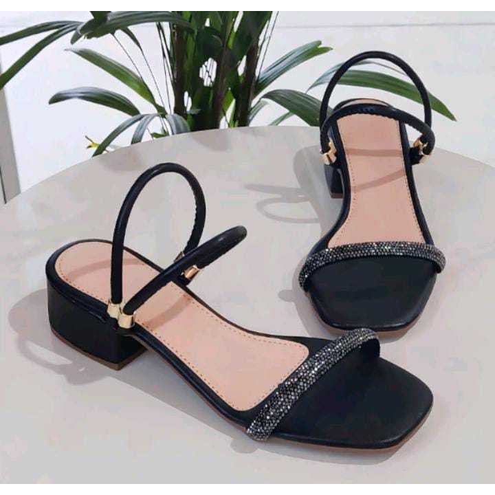 Sandália Feminina Salto Bloco Tira Strass Com Traseira Palmilha Confort salto baixo