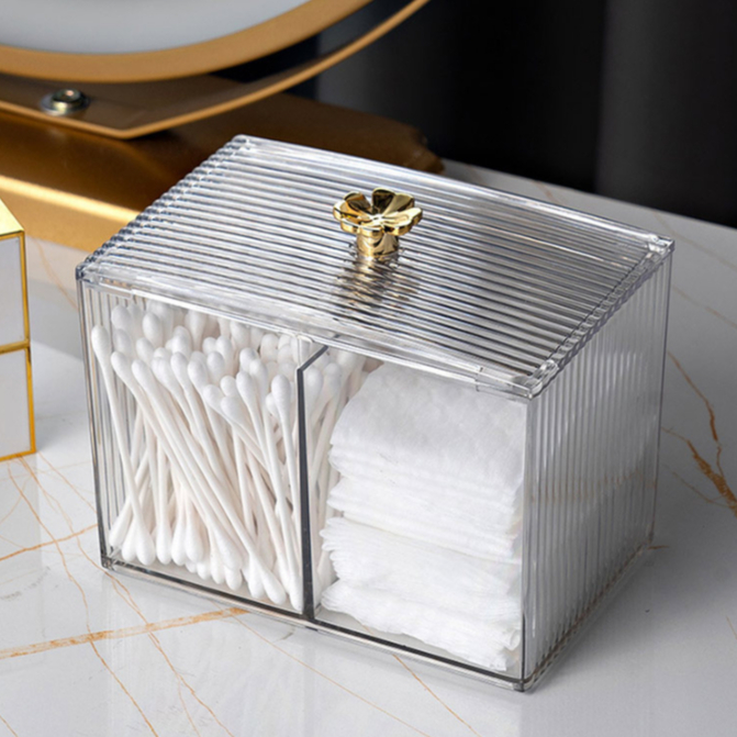 Kit 2 Em 1 Porta Algodão e Cotonete Objetos em Acrílico Duplo Transparente Organizador de Super Resistente Para Casa Cozinha Banheiro Multiuso Armazenamento