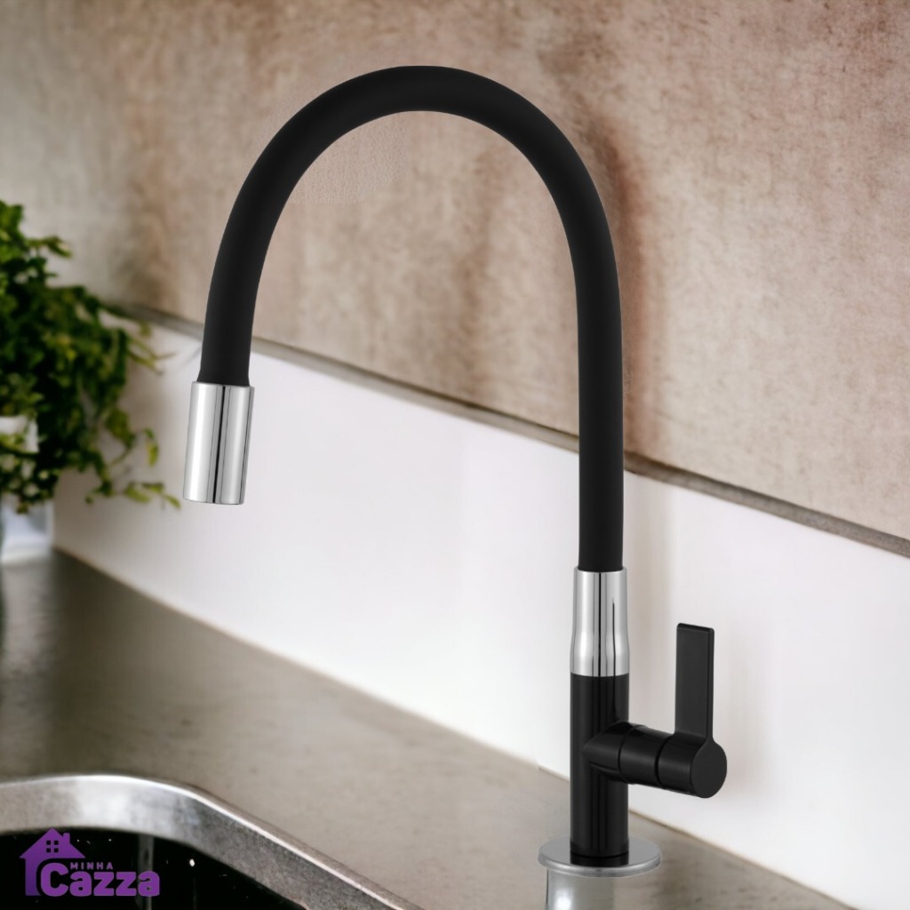 Torneira Gourmet Cozinha Preta Bancada Mesa Pia Cano Flexível 1/4 de volta Black Torneira ABS