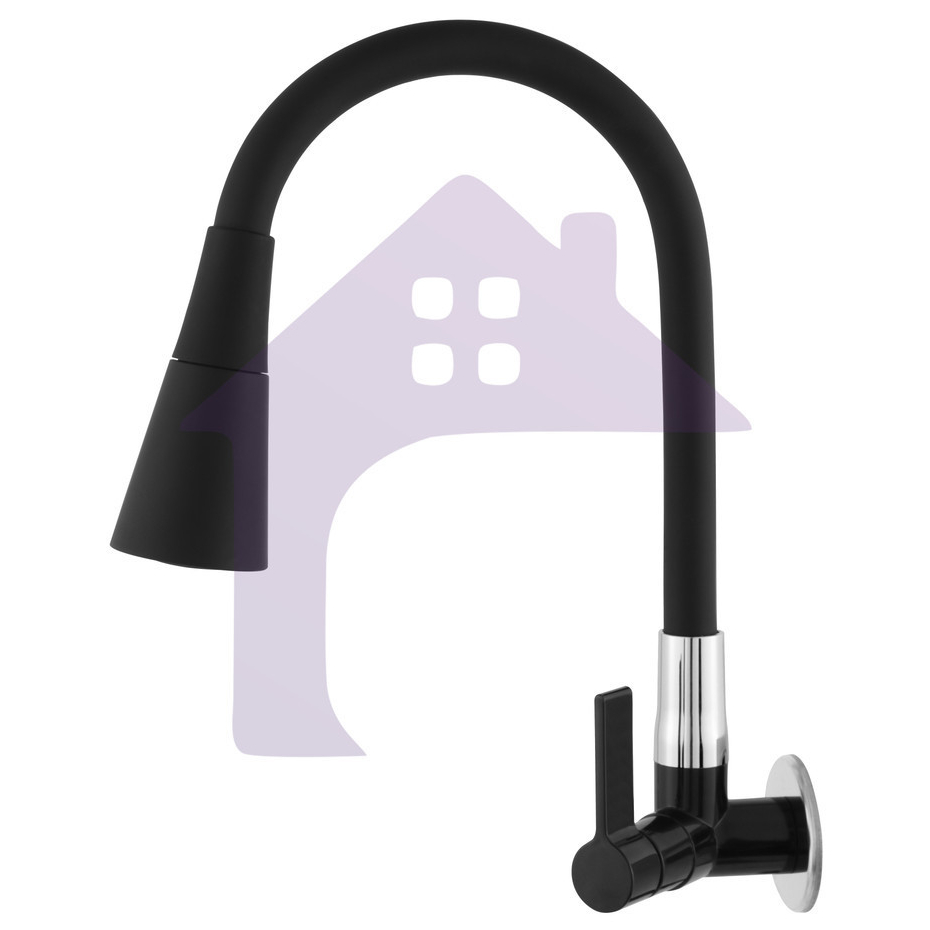 Torneira De Parede Pia Cozinha Gourmet Square Preta Cano De Silicone Flexível Chuveirinho 2 Jatos Super Luxo