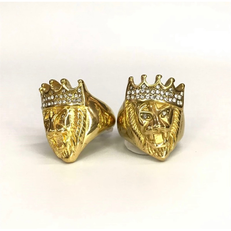 Anel Dedeira Leão Coroa Cravejado/ Banhado a Ouro 18k/ Aço inoxidável