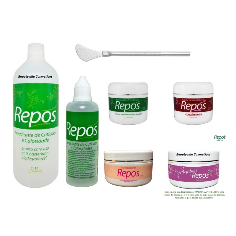 Kit Spa Repós - Amaciante 120ml + Amolec 1,1 + Creme Remov 120g + Creme 120g + Espátula 222 + Parafina + Esfoliante 250g