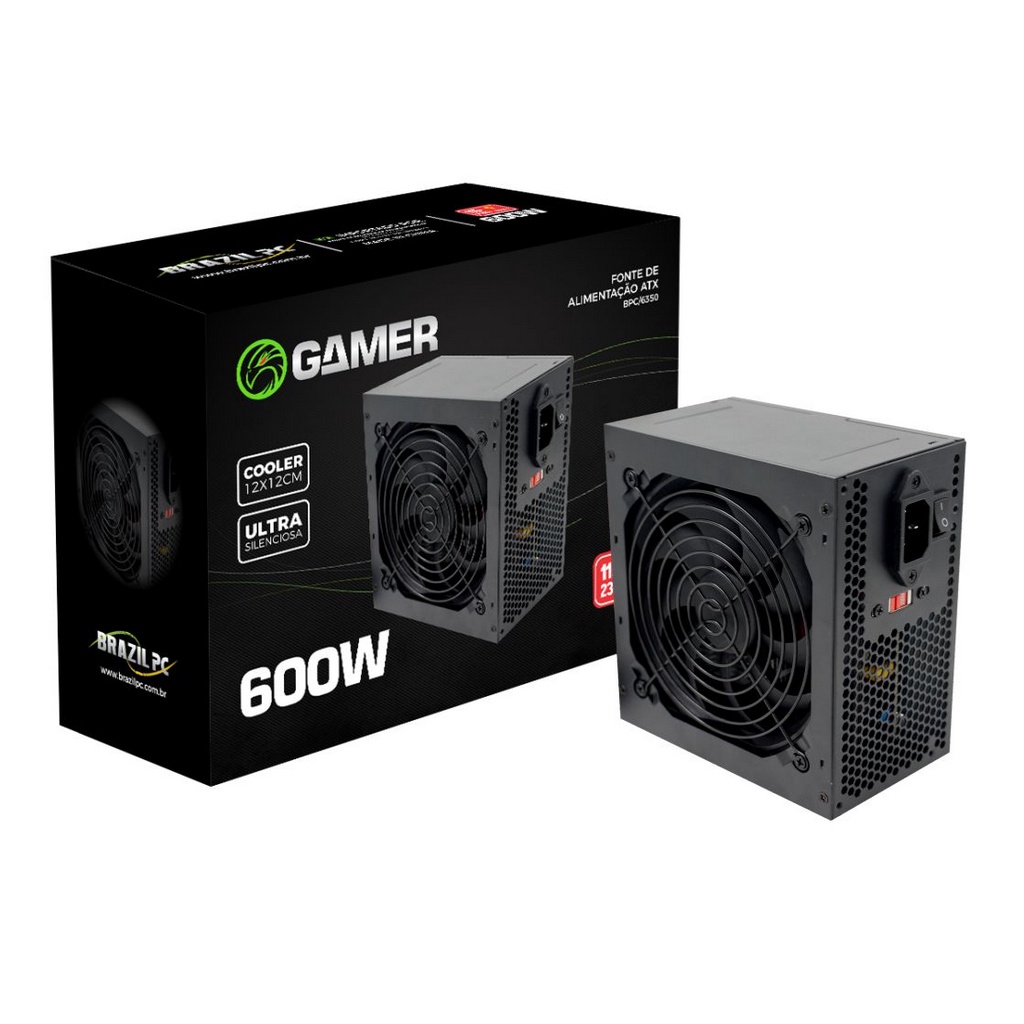 Fonte de Alimentação Para PC Gamer 600W 24 Pinos Silenciosa Bivolt 115V/230V Preta